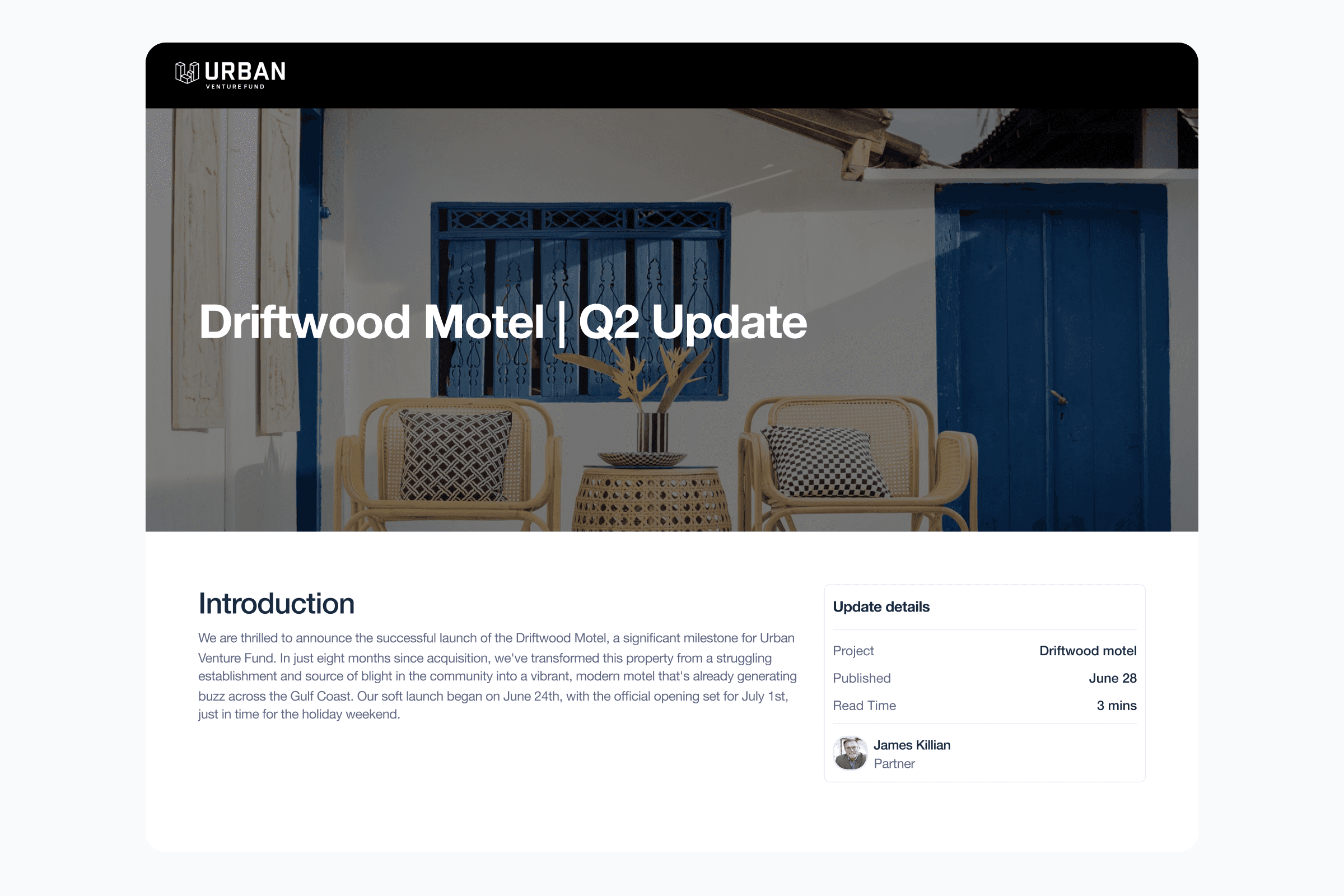 As a deal progresses, developers can post updates directly to the deal page.Investors always see the latest information without new emails or duplicate files.