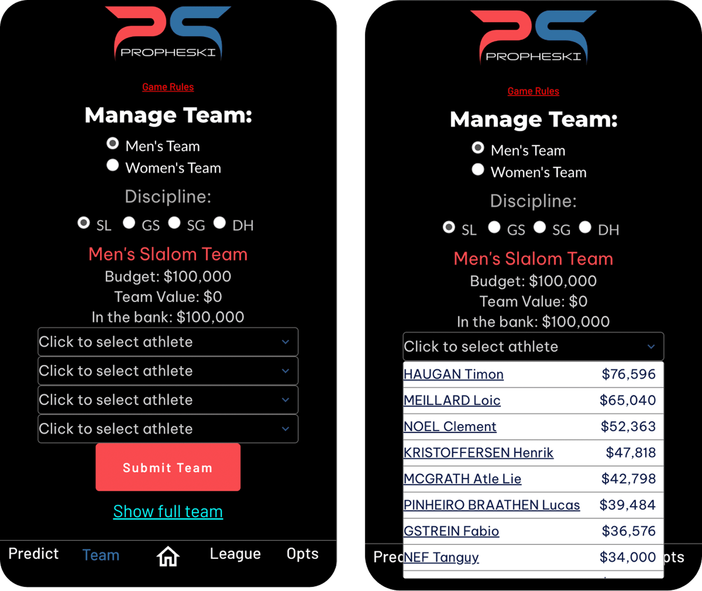 Propheski is a fantasy skiing app built around Olympic and World cup alpine ski races. Performance is tied directly to race outcomes, predictions, and league standings over the season.